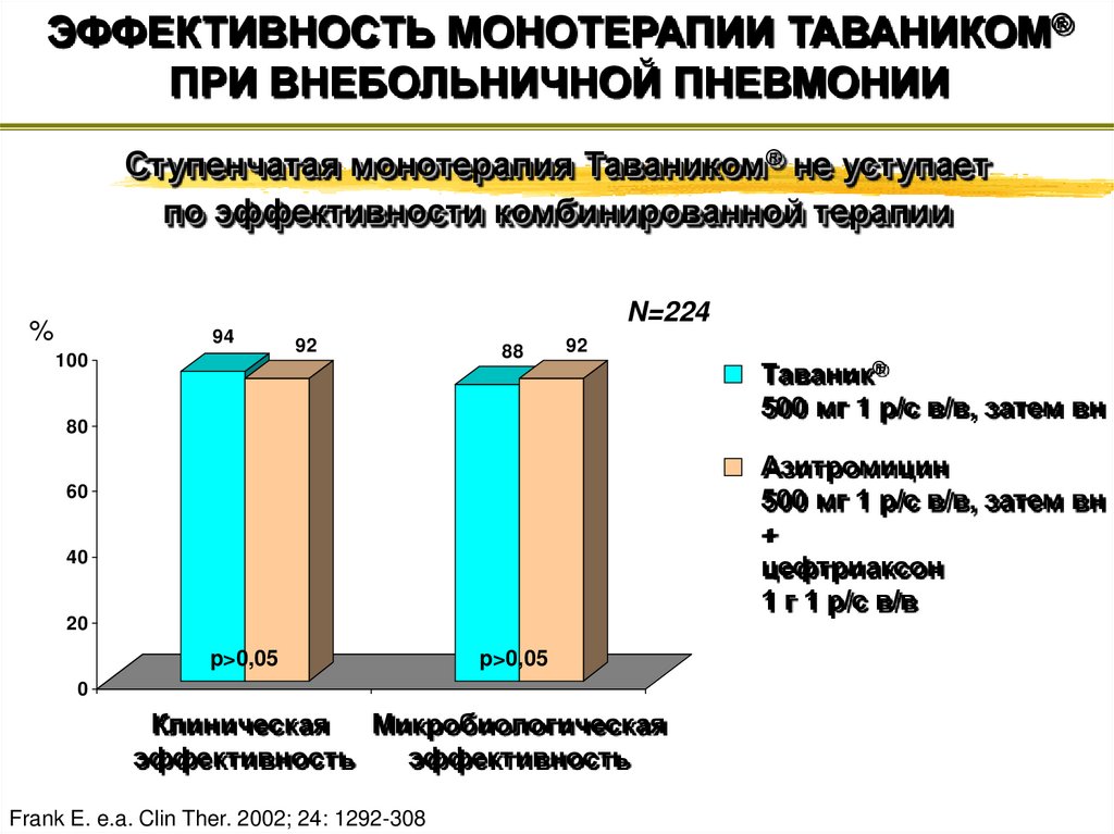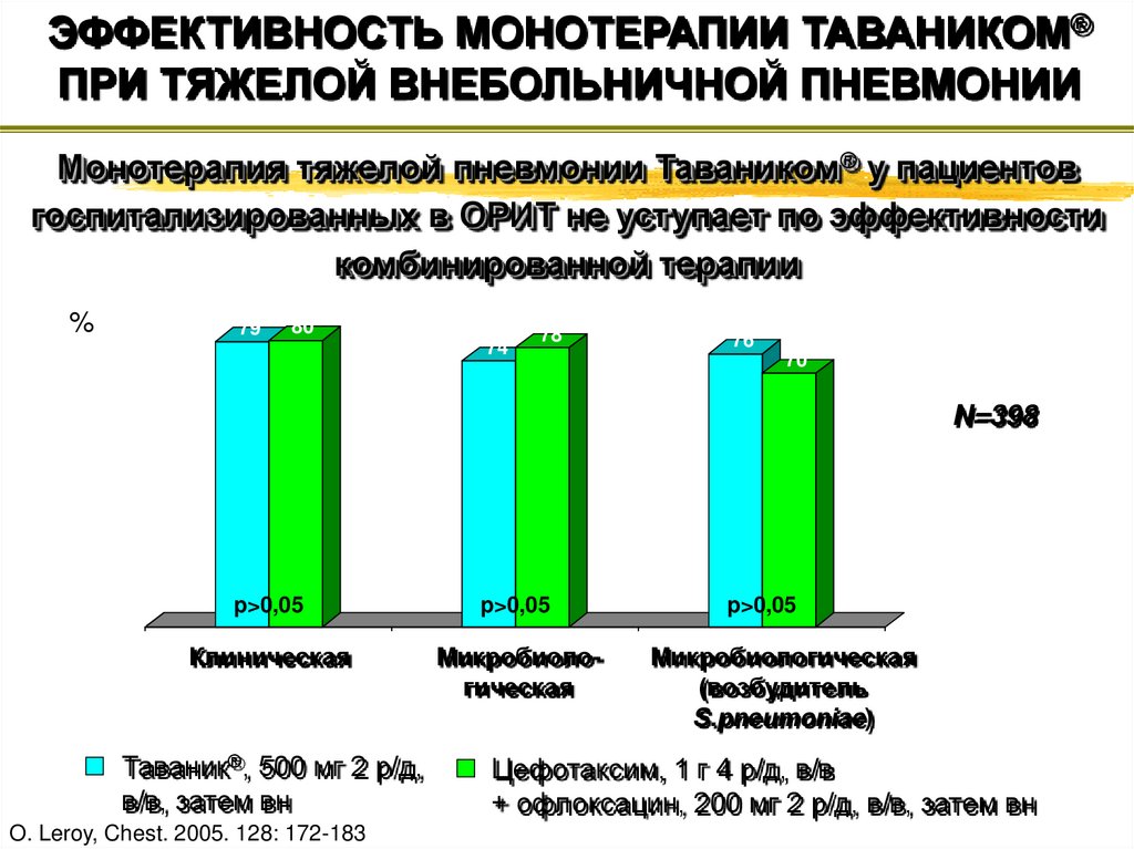 ЭФФЕКТИВНОСТЬ МОНОТЕРАПИИ ТАВАНИКОМ®ПРИ ТЯЖЕЛОЙ ВНЕБОЛЬНИЧНОЙ ПНЕВМОНИИ