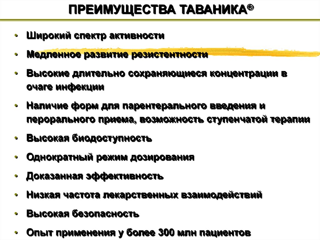 ПРЕИМУЩЕСТВА ТАВАНИКА®• Широкий спектр активности