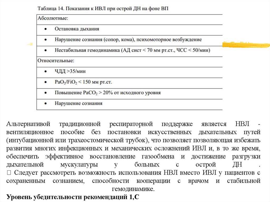 Альтернативой традиционной респираторной поддержке является НВЛ вентиляционное пособие без постановки искусственных дыхательных путей(интубационной или трахеостомической трубок), что позволяет позволяющая избежать
