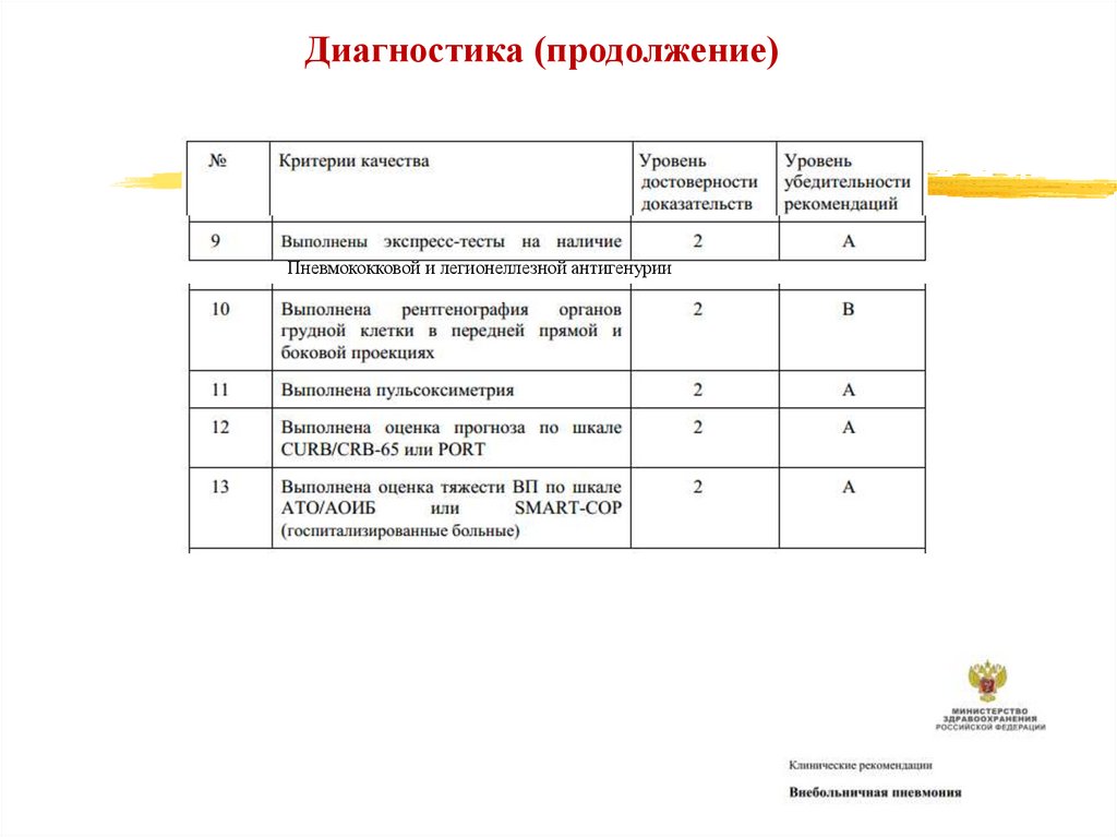 Диагностика (продолжение)Пневмококковой и легионеллезной антигенурии