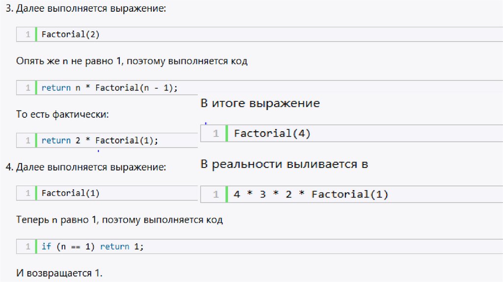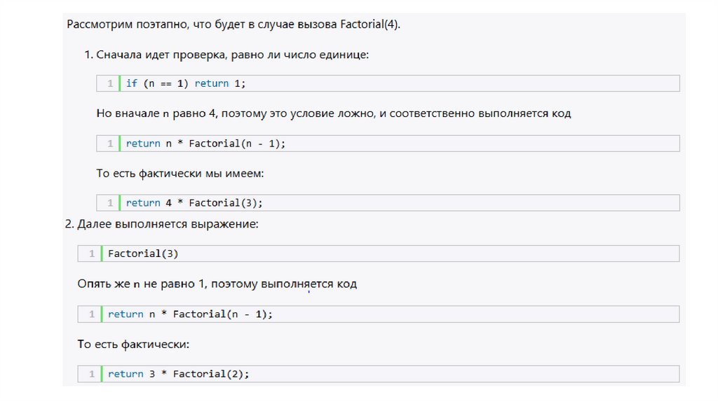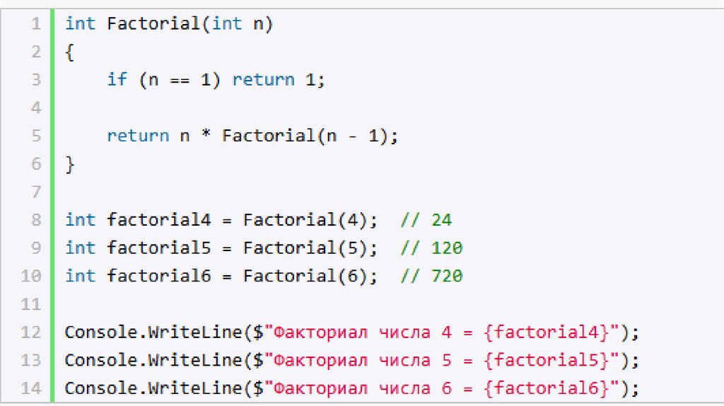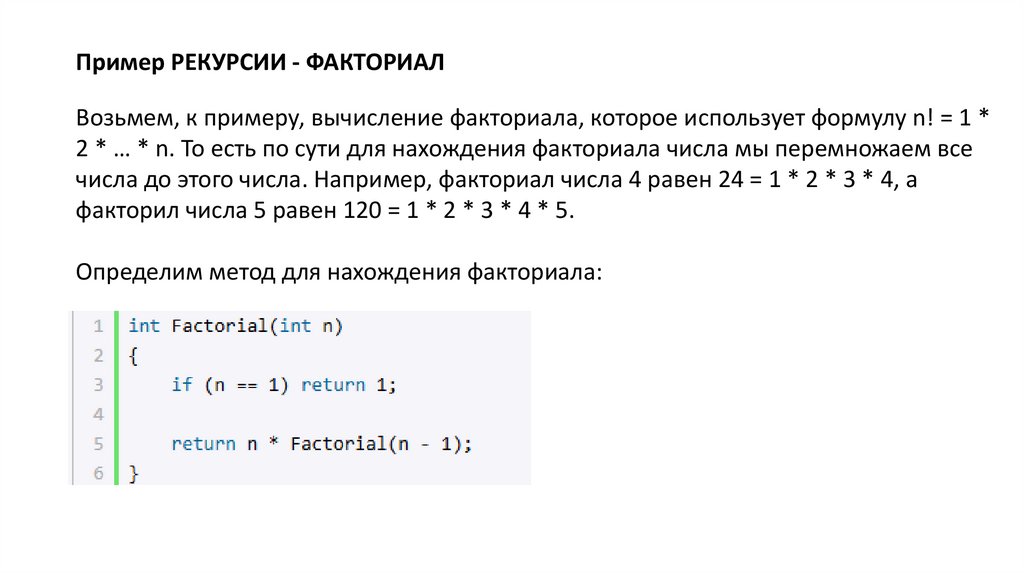 Базовые и рекурсивные случаиВ языке программирования C# рекурсивные