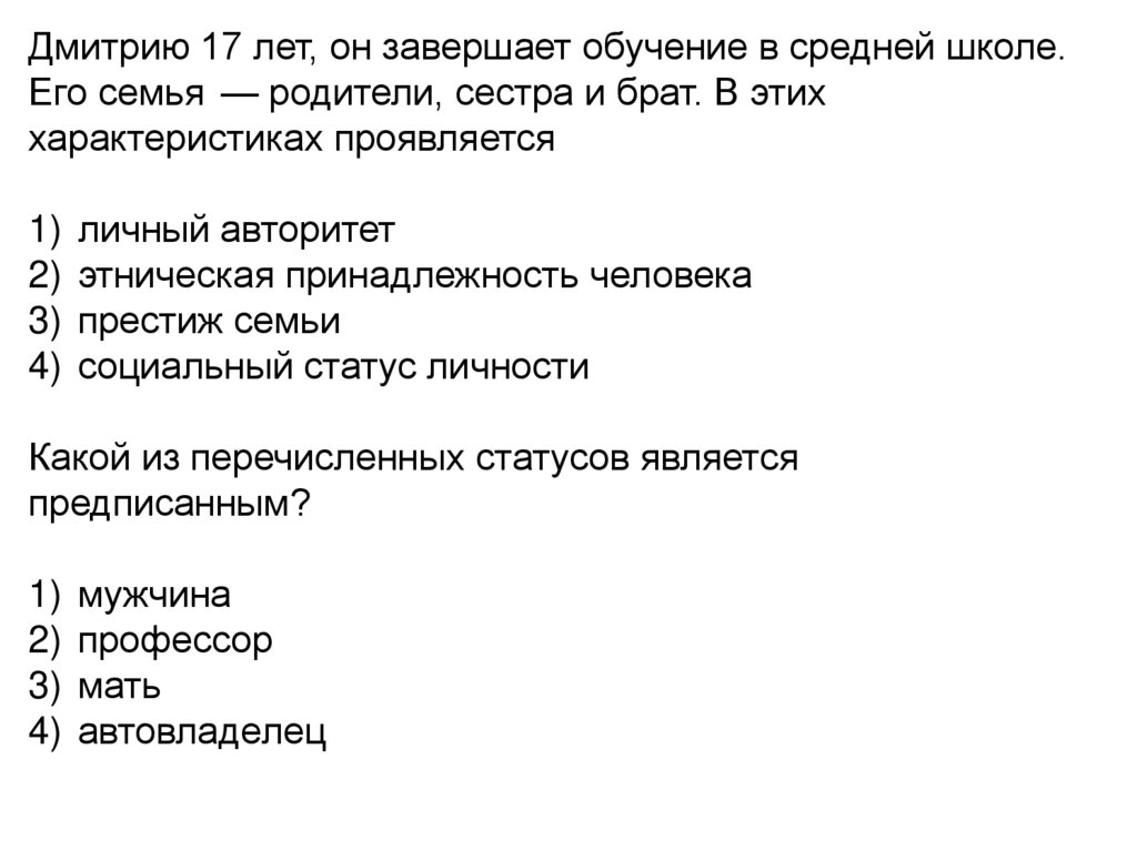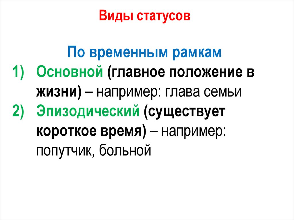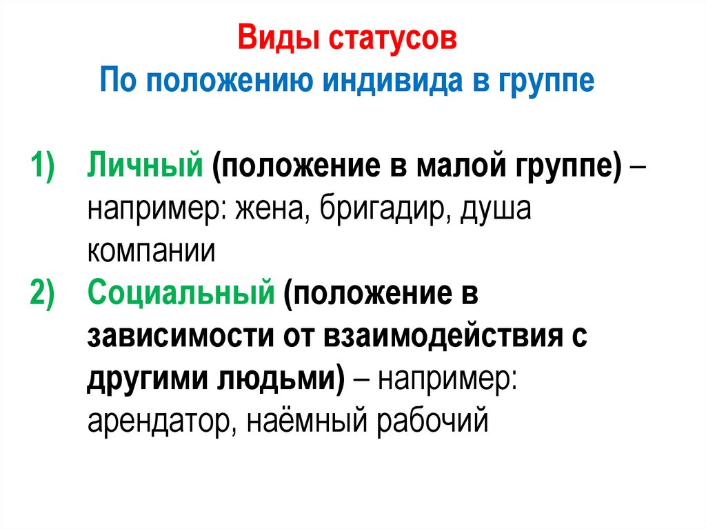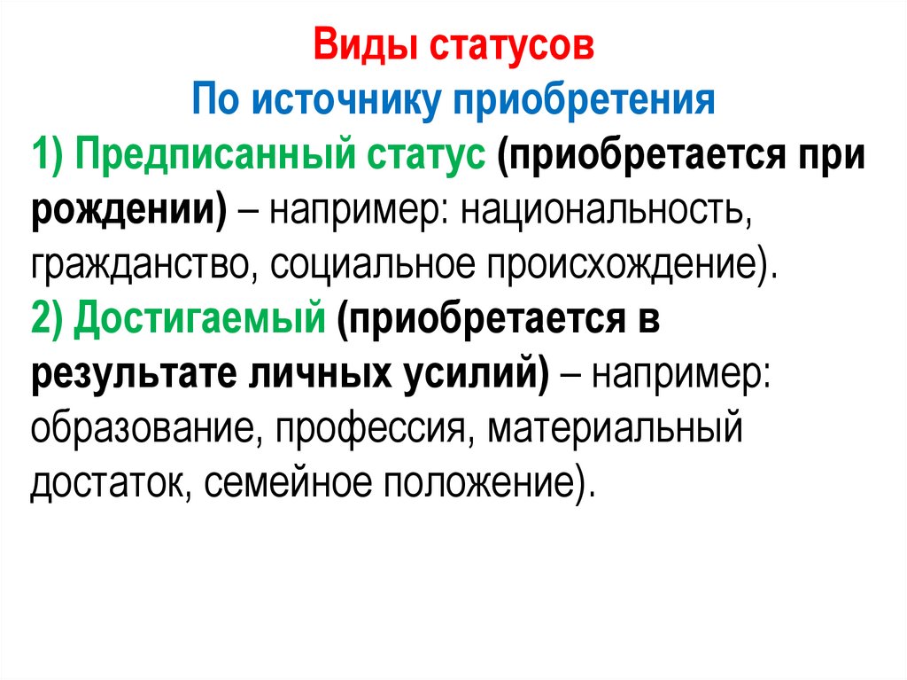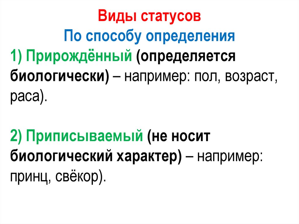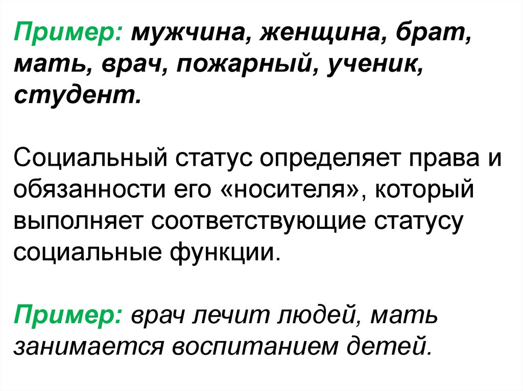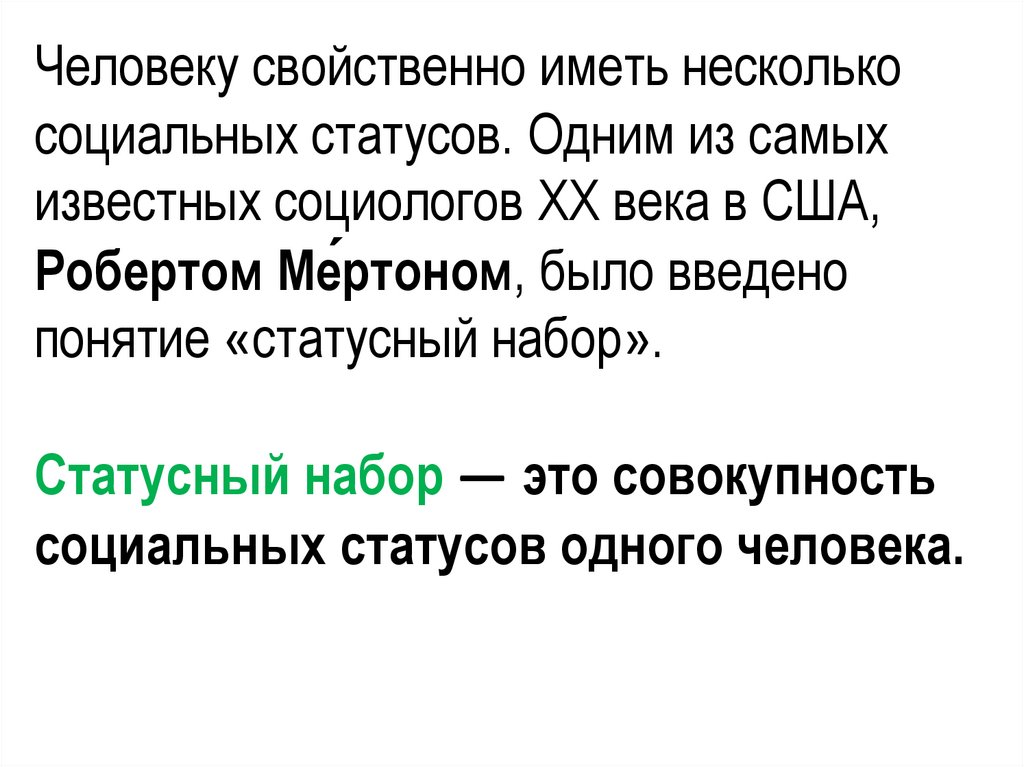Человеку свойственно иметь несколькосоциальных статусов. Одним из самых