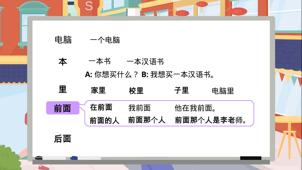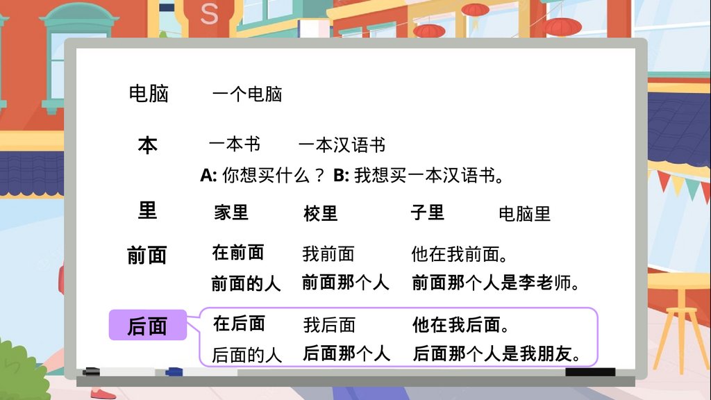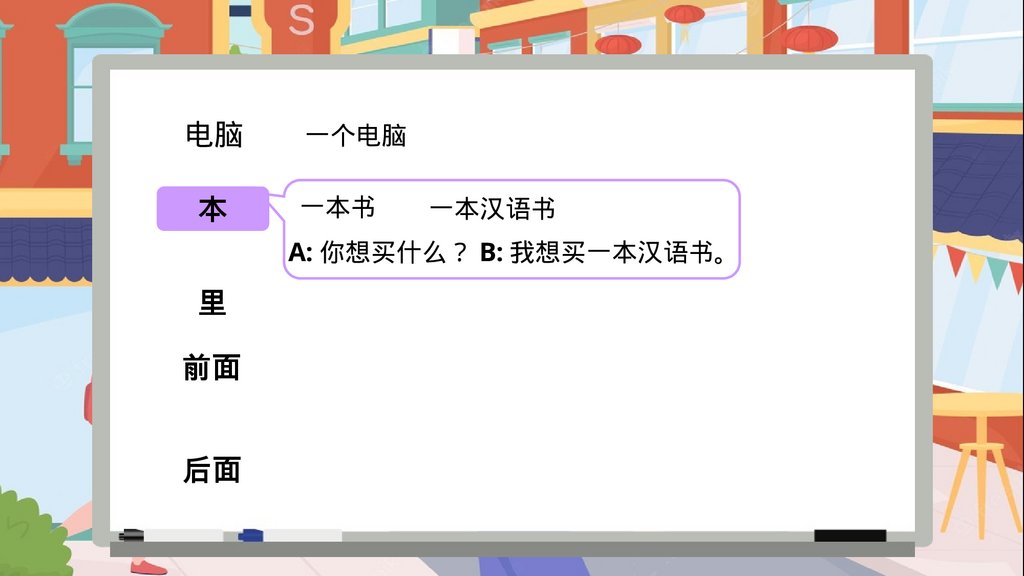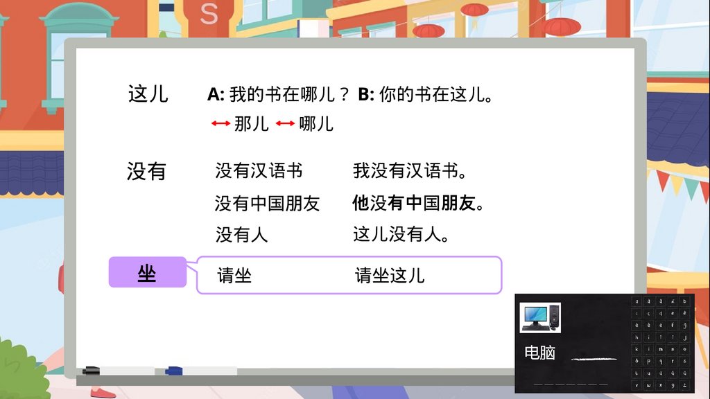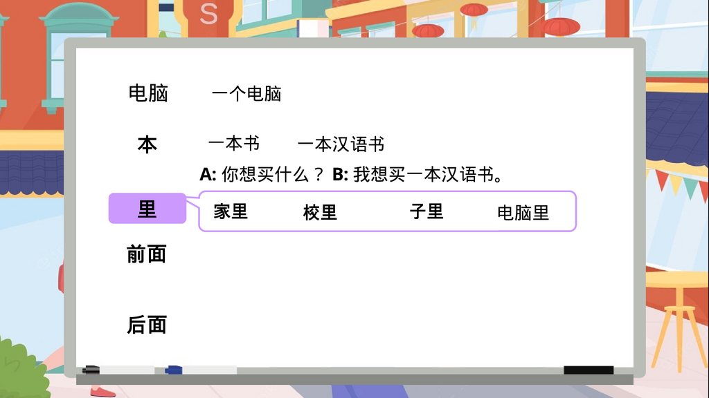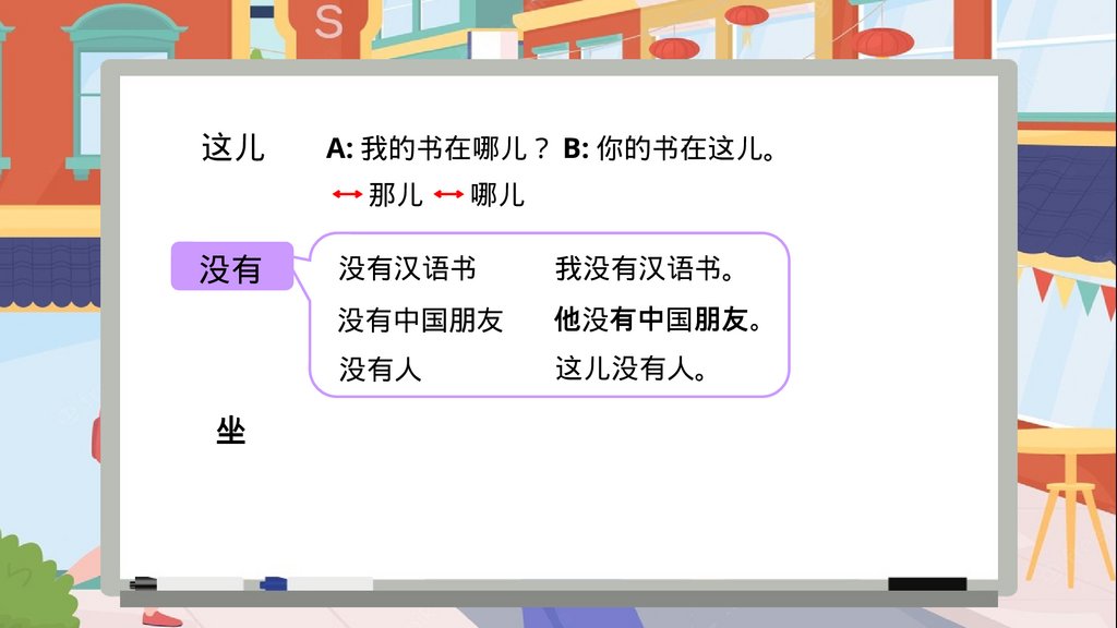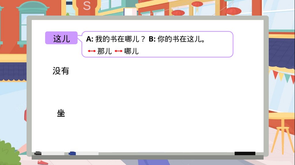 这儿A: 我的书在哪儿 B: 你的书在这儿。