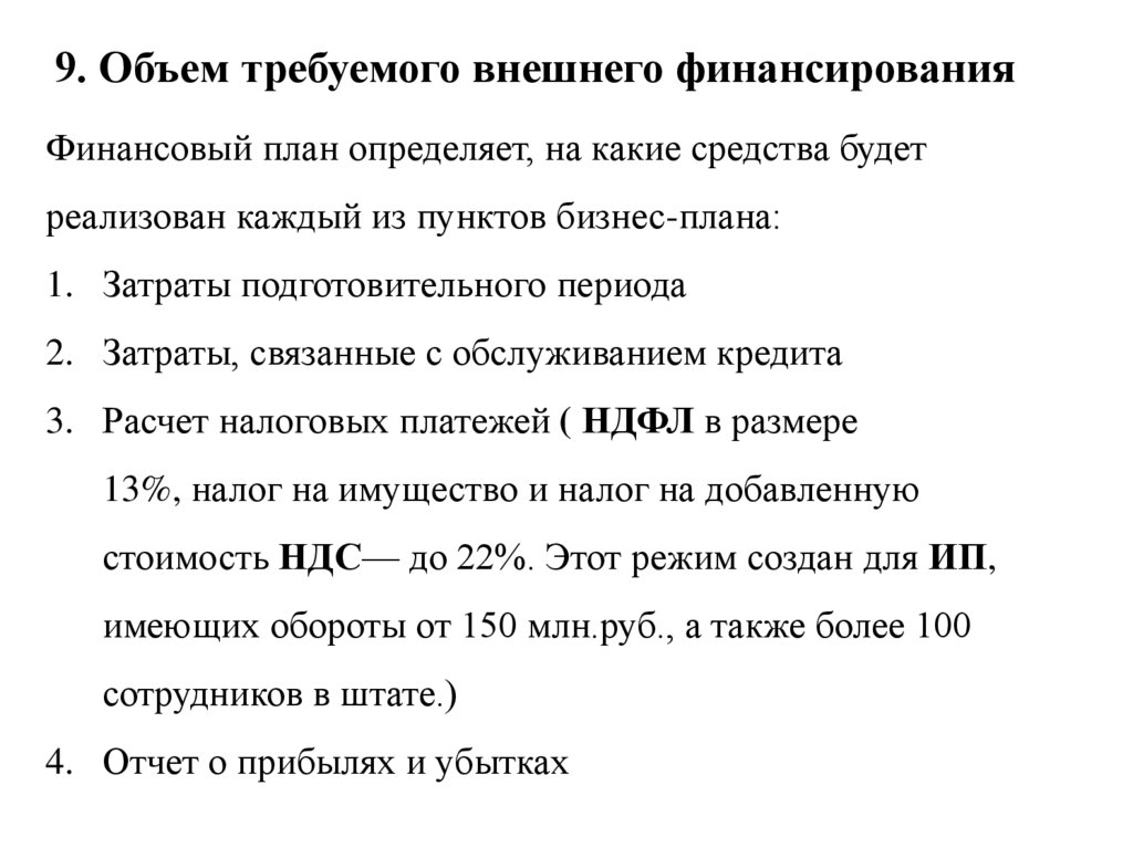 9. Объем требуемого внешнего финансированияФинансовый план определяет, на какие средства будет