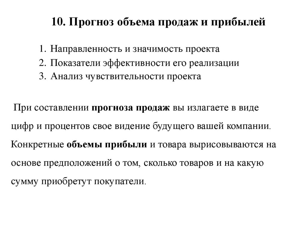 10. Прогноз объема продаж и прибылей1. Направленность и значимость проекта