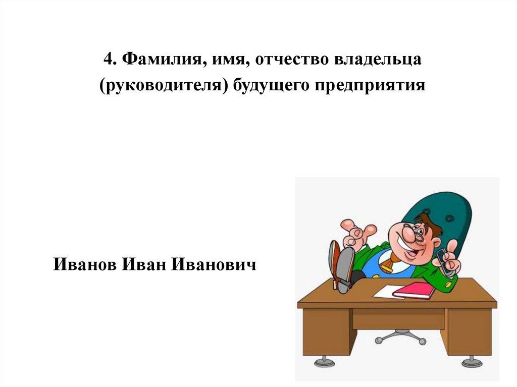 4. Фамилия, имя, отчество владельца(руководителя) будущего предприятия