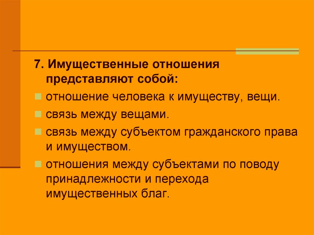7. Имущественные отношенияпредставляют собой: