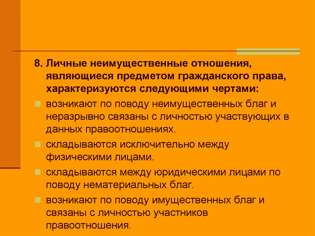 8. Личные неимущественные отношения,являющиеся предметом гражданского права,