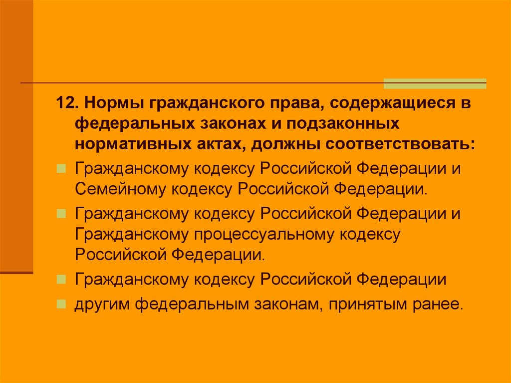 12. Нормы гражданского права, содержащиеся вфедеральных законах и подзаконных
