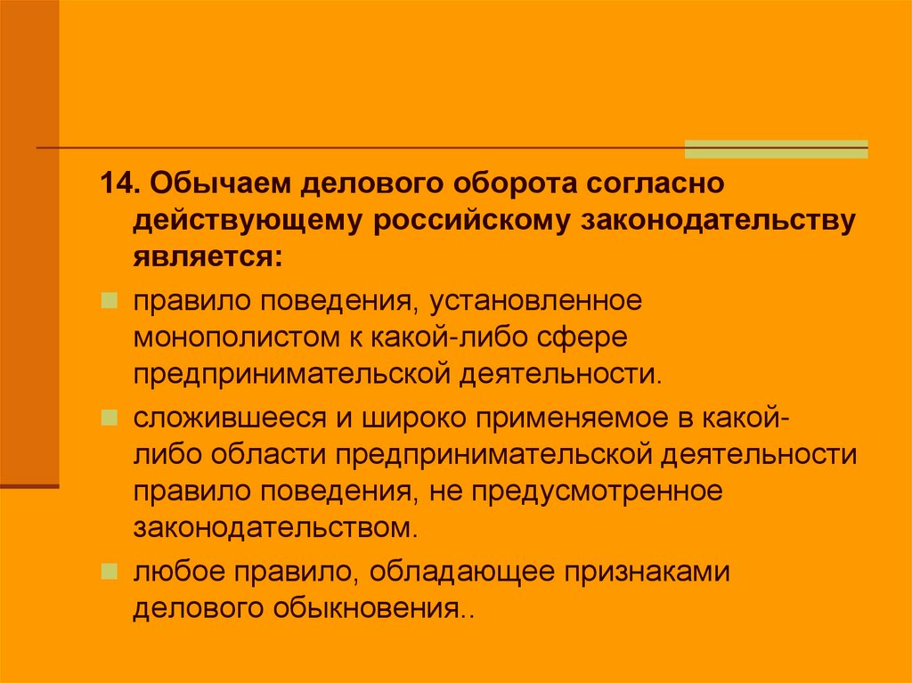 14. Обычаем делового оборота согласнодействующему российскому законодательству