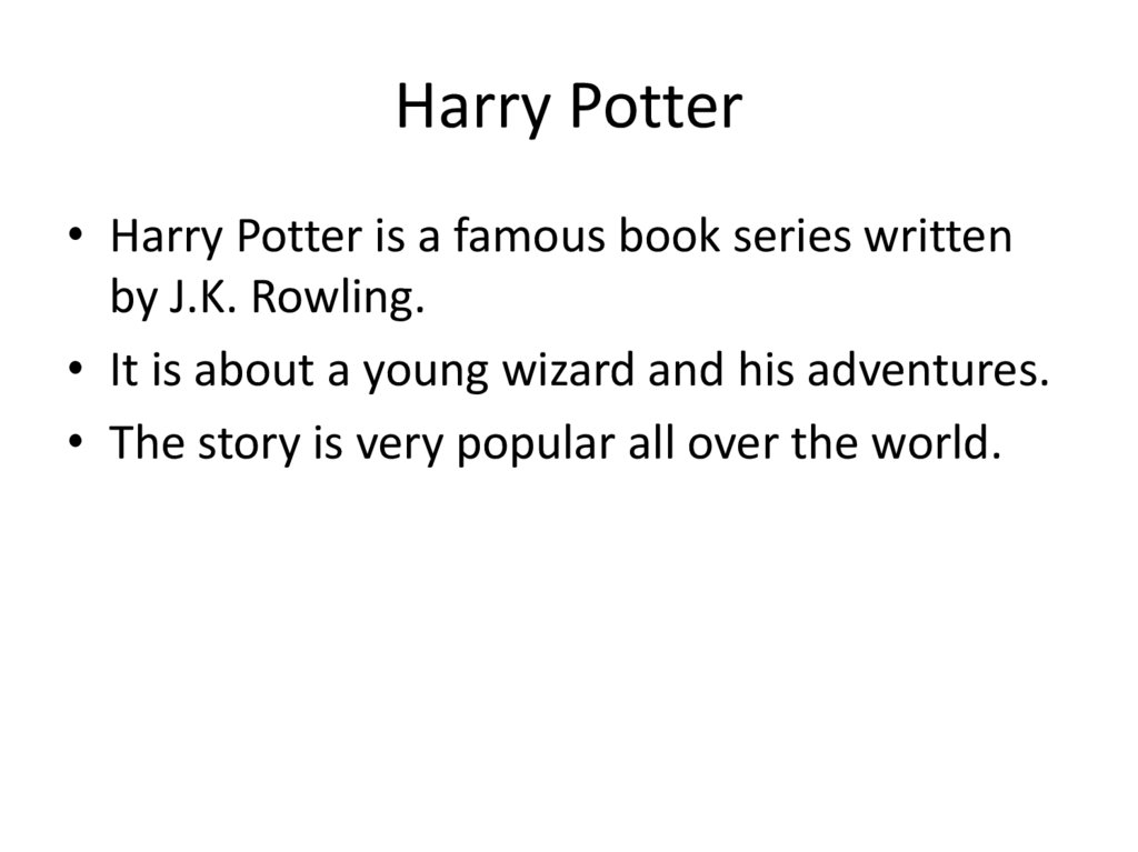 Harry Potter• Harry Potter is a famous book series written