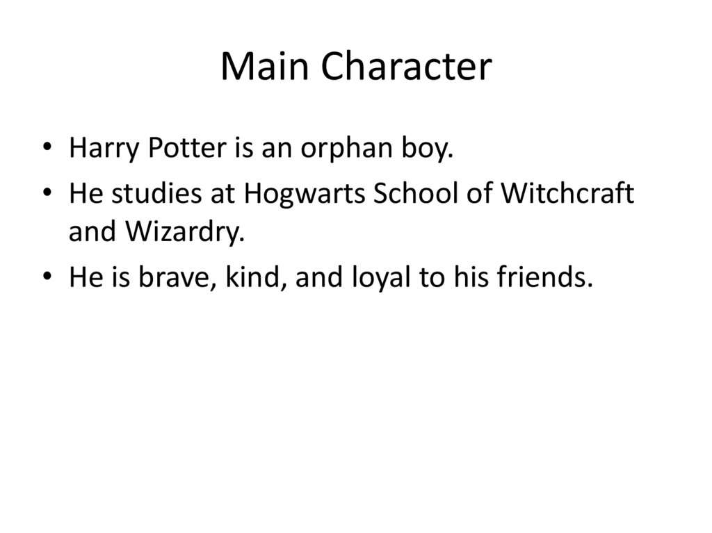 Main Character• Harry Potter is an orphan boy.