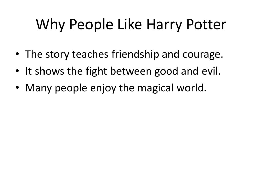 Why People Like Harry Potter• The story teaches friendship and courage.
