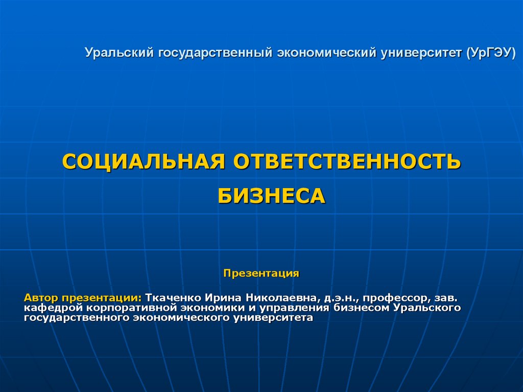 Уральский государственный экономический университет (УрГЭУ)СОЦИАЛЬНАЯ ОТВЕТСТВЕННОСТЬ