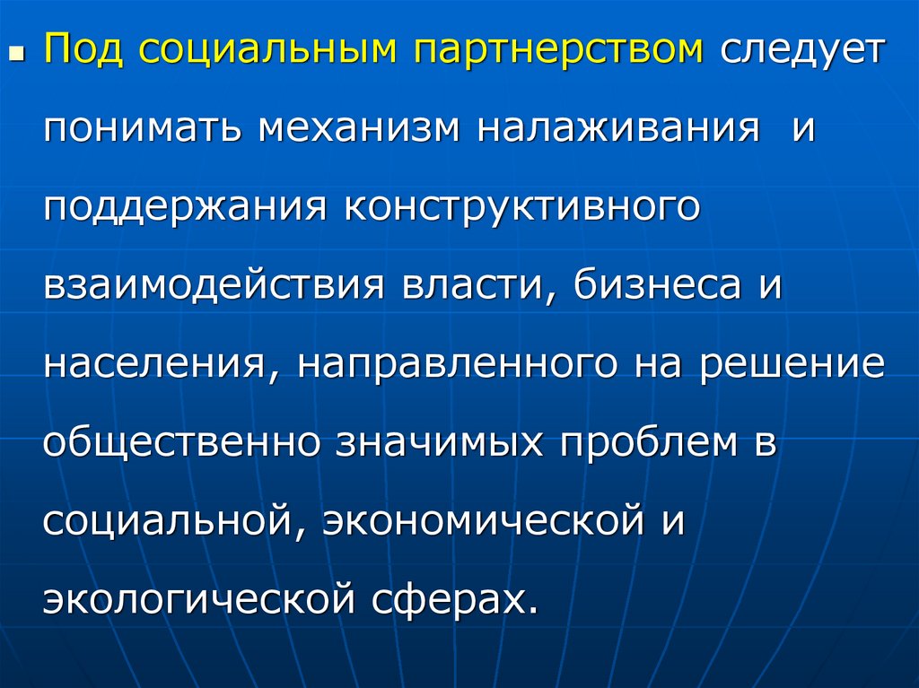 Под социальным партнерством следуетпонимать механизм налаживания и