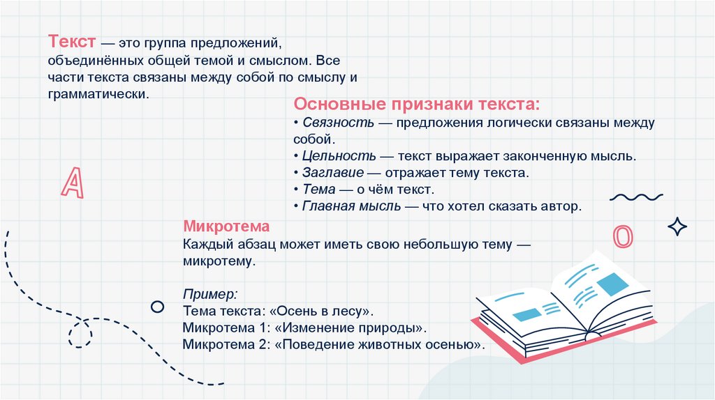 Текст — это группа предложений,объединённых общей темой и смыслом. Все