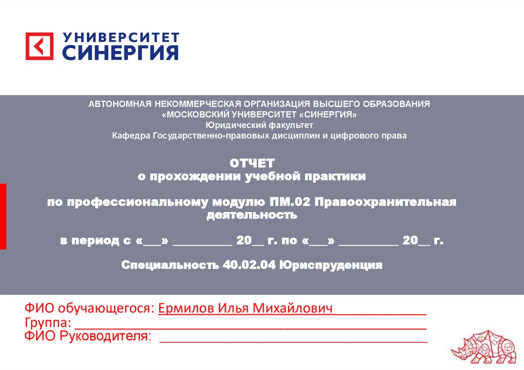 1. ОТЧЕТ о прохождении учебной практики по профессиональному модулю ПМ.02 Правоохранительная деятельность в период с «___»