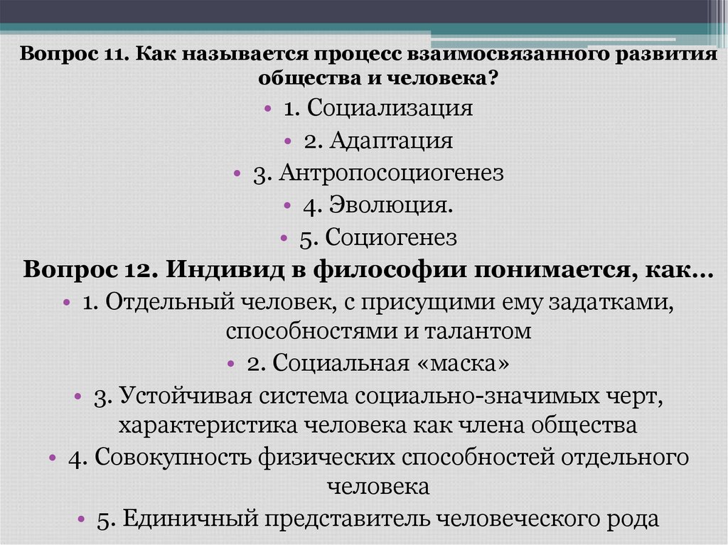 Вопрос 11. Как называется процесс взаимосвязанного развитияобщества и человека?
