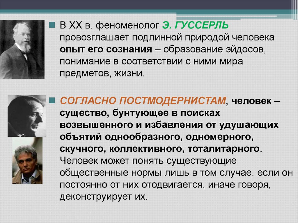В XX в. феноменолог Э. ГУССЕРЛЬпровозглашает подлинной природой человека