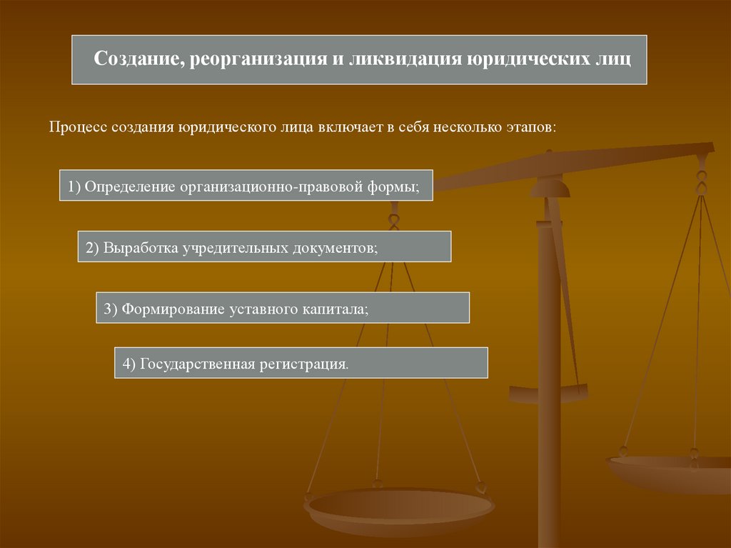 Создание, реорганизация и ликвидация юридических лицПроцесс создания юридического лица включает в себя несколько этапов: