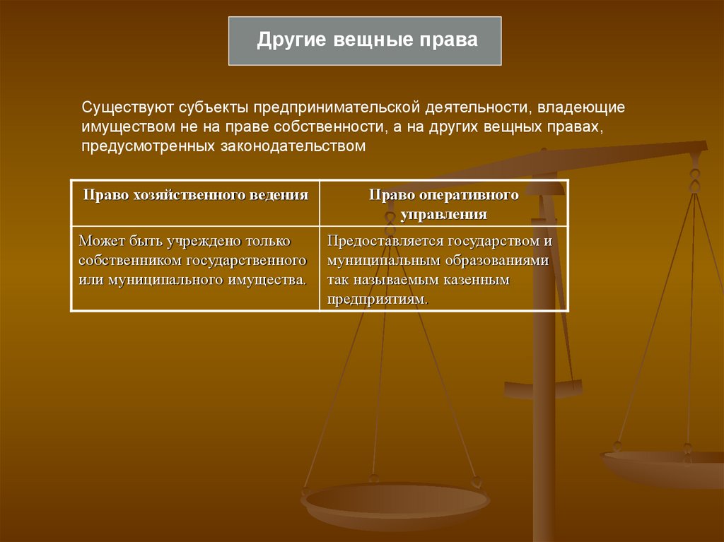 Другие вещные праваСуществуют субъекты предпринимательской деятельности, владеющие