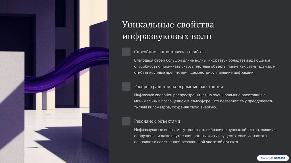 Благодаря своей большой длине волны, инфразвук обладает выдающейся