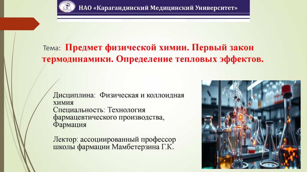 НАО «Карагандинский Медицинский Университет»Энергия в фармацевтическом