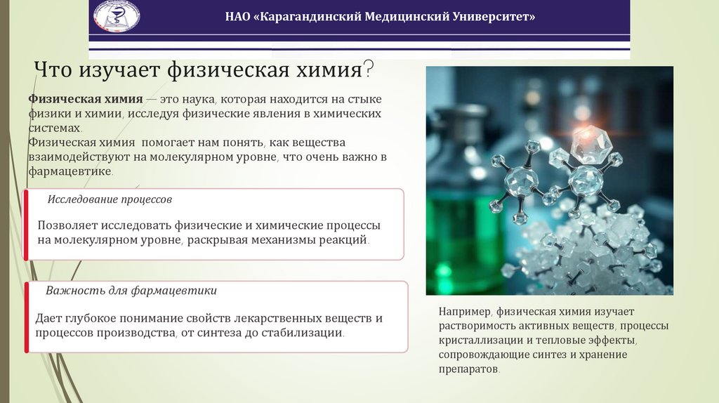 НАО «Карагандинский Медицинский Университет»Что изучает физическая химия?