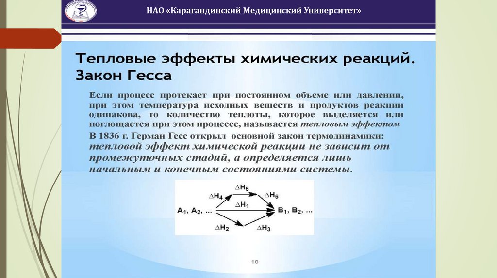 НАО «Карагандинский Медицинский Университет»36. Закон Гесса