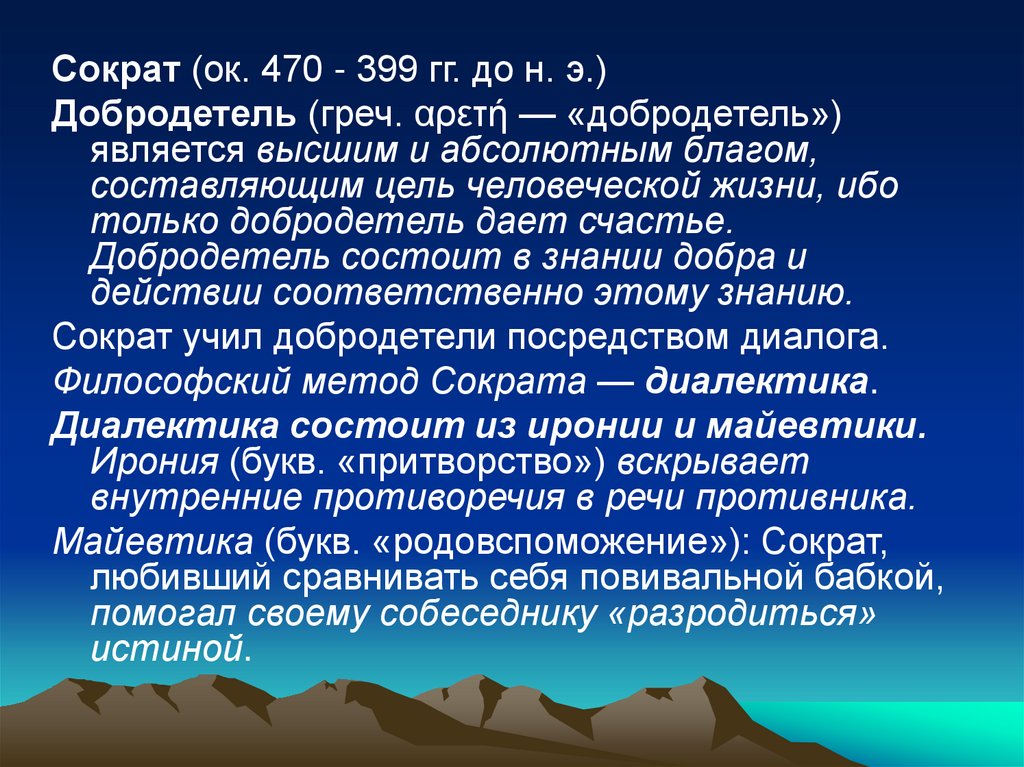 Сократ (ок. 470 - 399 гг. до н. э.)Добродетель (греч. αρετή — «добродетель»)