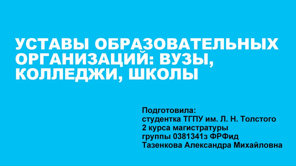 УСТАВЫ ОБРАЗОВАТЕЛЬНЫХОРГАНИЗАЦИЙ: ВУЗЫ,