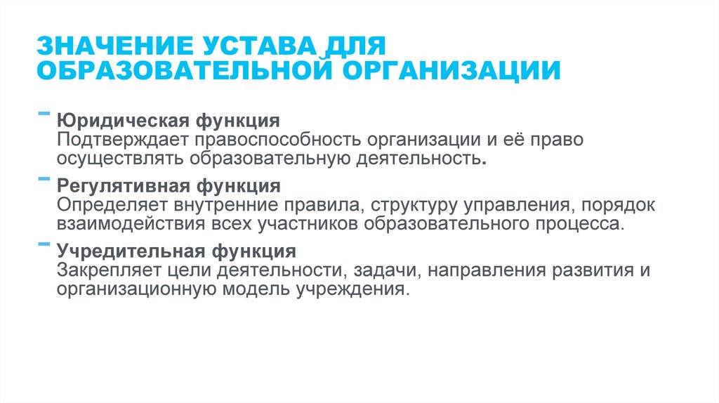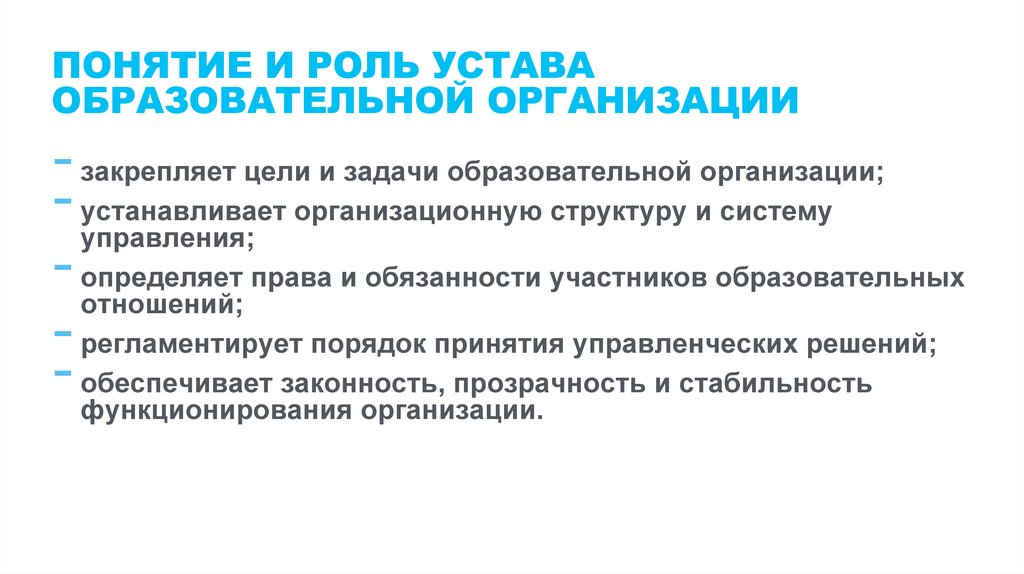 ЗНАЧЕНИЕ УСТАВА ДЛЯОБРАЗОВАТЕЛЬНОЙ ОРГАНИЗАЦИИ