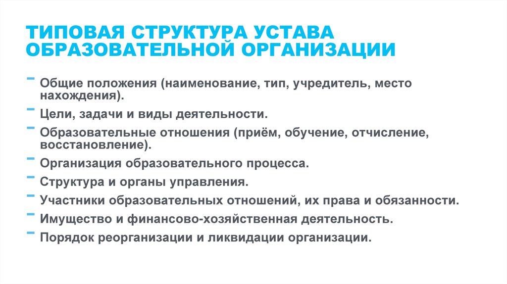 ТИПОВАЯ СТРУКТУРА УСТАВАОБРАЗОВАТЕЛЬНОЙ ОРГАНИЗАЦИИ