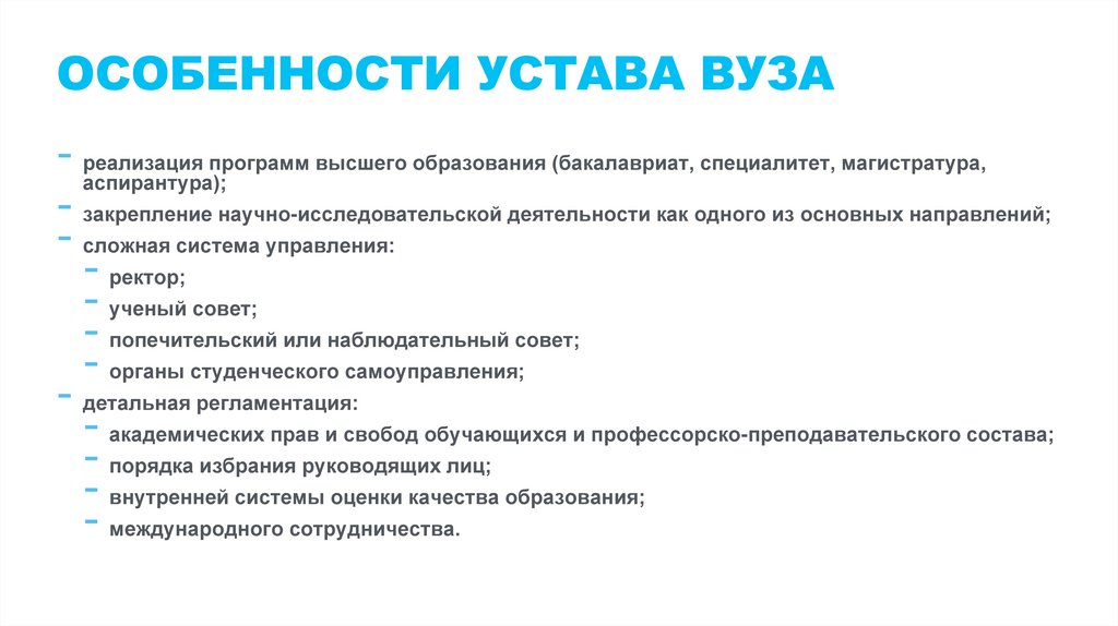 ОСОБЕННОСТИ УСТАВА ВУЗА-
