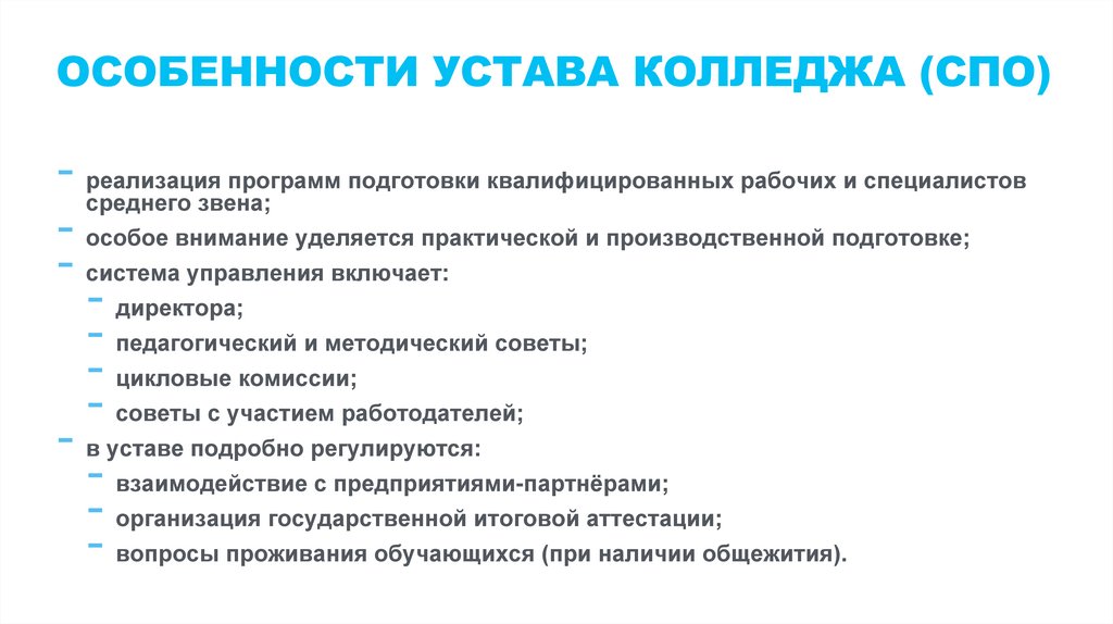 ОСОБЕННОСТИ УСТАВА КОЛЛЕДЖА (СПО)-