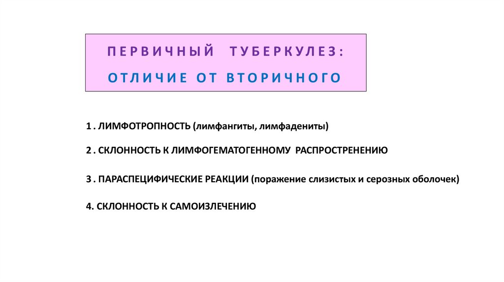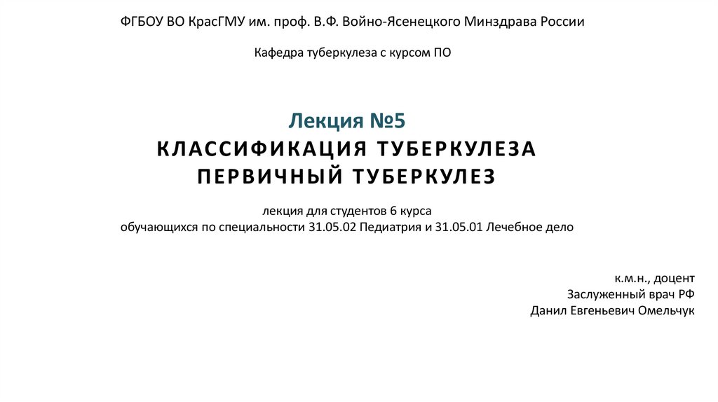 1. Лекция №5 КЛАССИФИКАЦИЯ ТУБЕРКУЛЕЗА ПЕРВИЧНЫЙ ТУБЕРКУЛЕЗ лекция для студентов 6 курса обучающихся по специальности 31.05.02