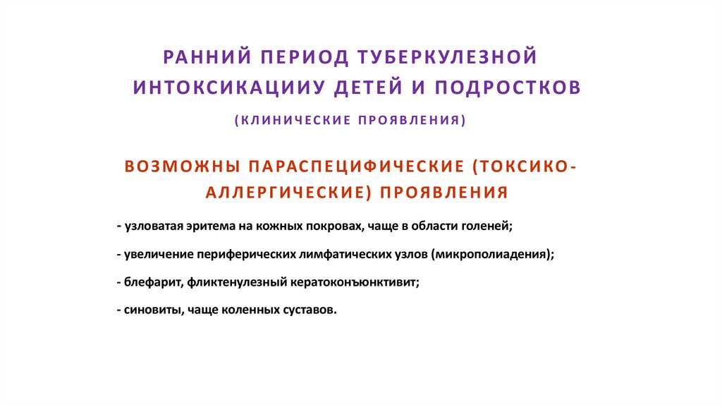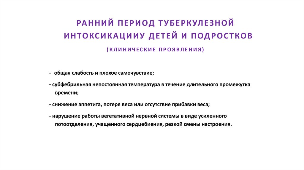 • Туберкулезная интоксикация у детей и подростков: клиника,