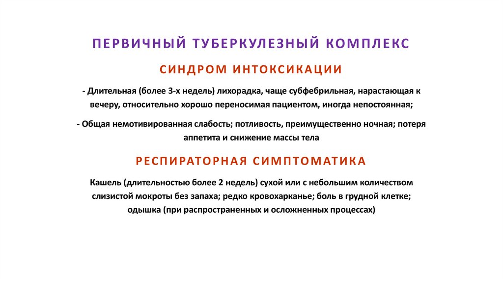 • Первичный туберкулезный комплекс: клиника, диагностика