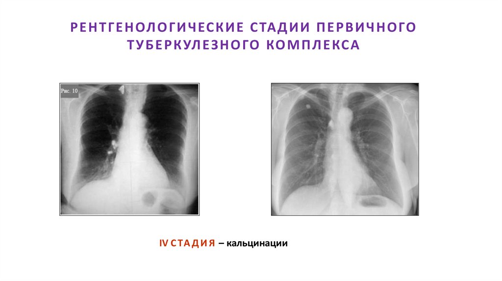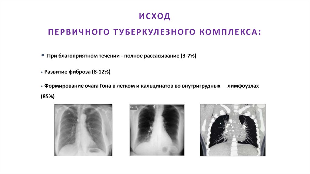 • Формирование очага Гона в легком и кальцинатов во внутригрудных