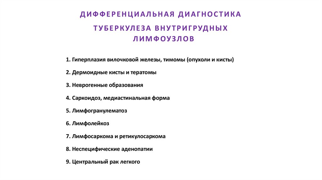 ДИФФЕРЕНЦИАЛЬНАЯ ДИАГНОСТИКАТ У Б Е Р К УЛ Е З А В Н У Т Р И Г Р УД Н Ы Х Л И М Ф О У З Л О В