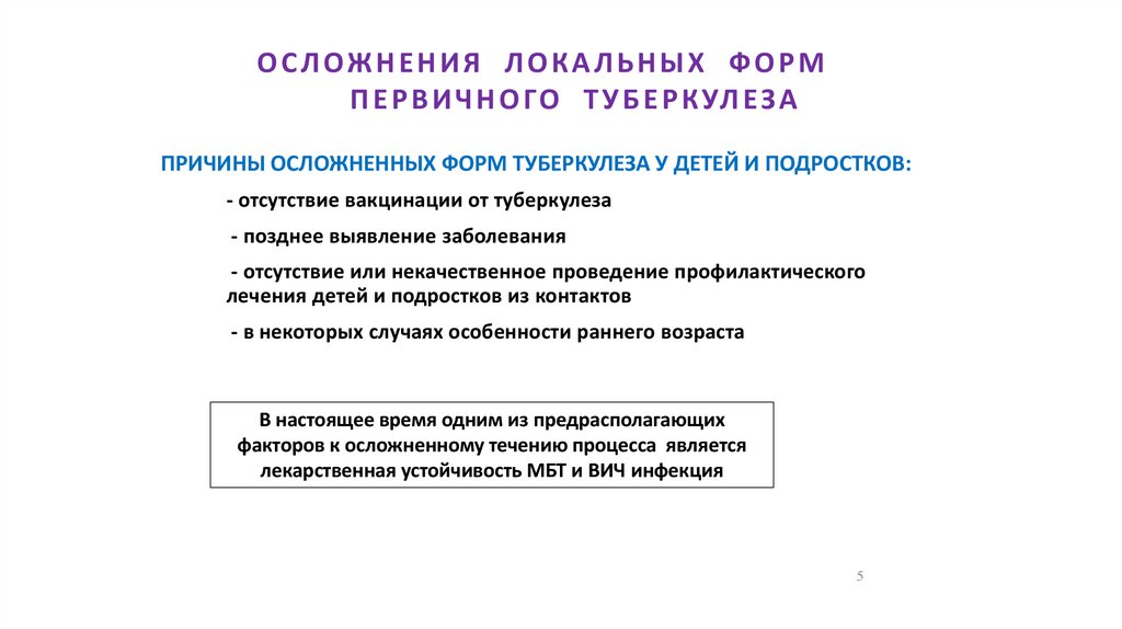 ПРИЧИНЫ ОСЛОЖНЕННЫХ ФОРМ ТУБЕРКУЛЕЗА У ДЕТЕЙ И ПОДРОСТКОВ: