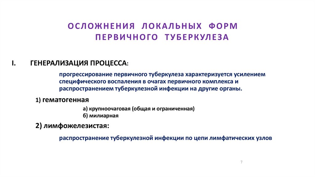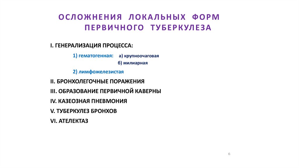 ЛЕКЦИЯ №6ОСЛОЖНЕННЫЕ ФОРМЫ ПЕРВИЧНОГО ТУБЕРКУЛЕЗА