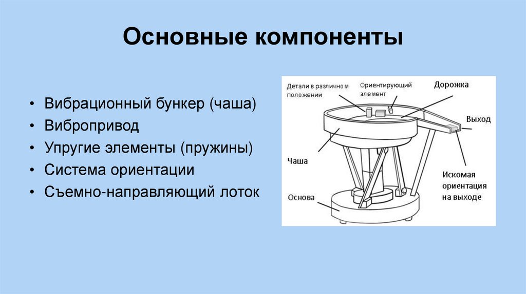 Основные компоненты• Вибрационный бункер (чаша)
