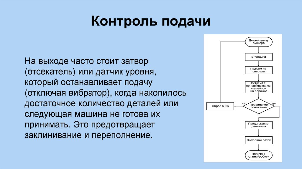 Контроль подачиНа выходе часто стоит затвор