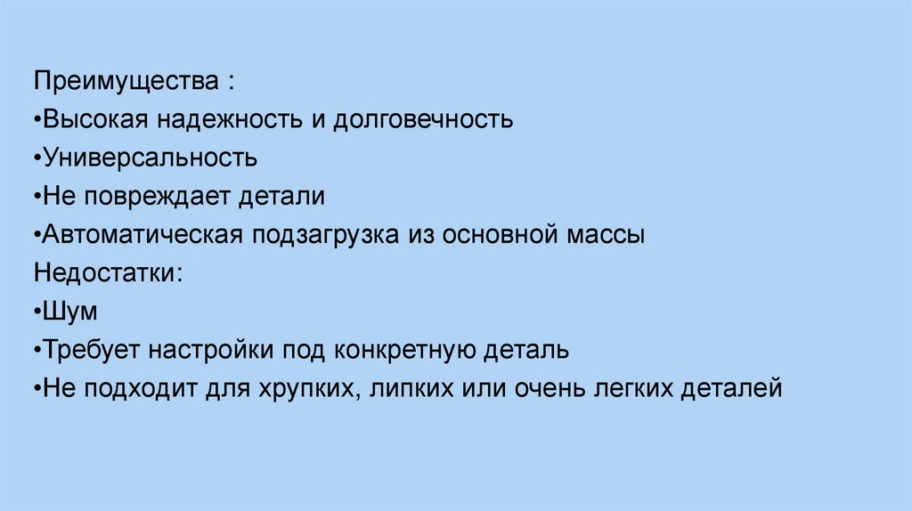 •Не подходит для хрупких, липких или очень легких деталей