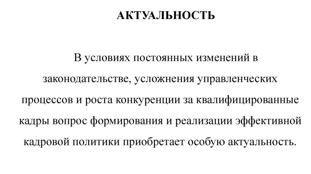 АКТУАЛЬНОСТЬВ условиях постоянных изменений в
