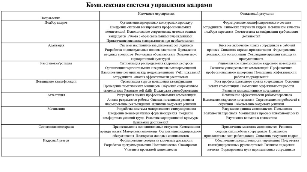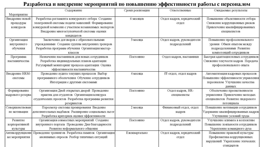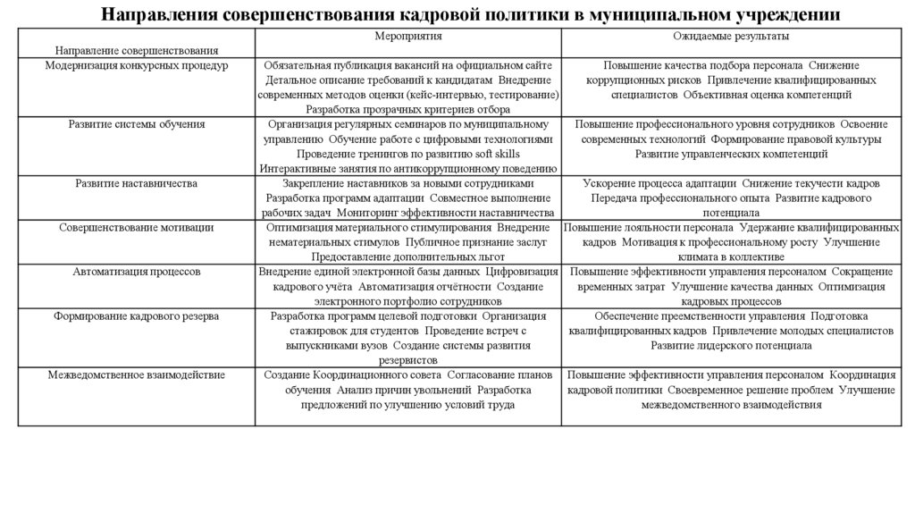 предложить направления совершенствования кадровой политики и мероприятия по повышению эффективности
