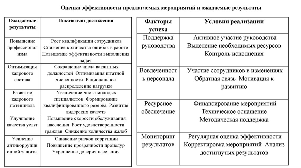 Оценка эффективности предлагаемых мероприятий и ожидаемые результатыОжидаемые