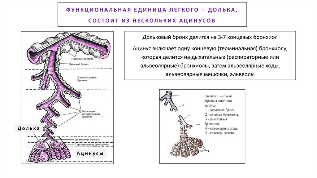 ФУНКЦИОНАЛЬНАЯ ЕДИНИЦА ЛЕГКОГО – ДОЛЬКА ,СОСТОИТ ИЗ НЕСКОЛЬКИХ АЦИНУСОВ