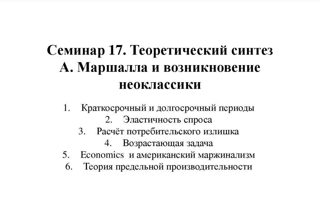 1. Семинар 17. Теоретический синтез А. Маршалла и возникновение неоклассики